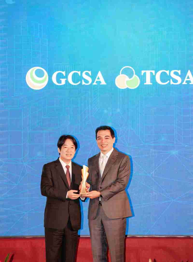 达全方位永续表现获全球永续奖及台湾永续奖肯定,,,,由副总统赖清德颁奖 (左),,,z6mg·人生就是博总经理柯富仁 (右) 代表领奖