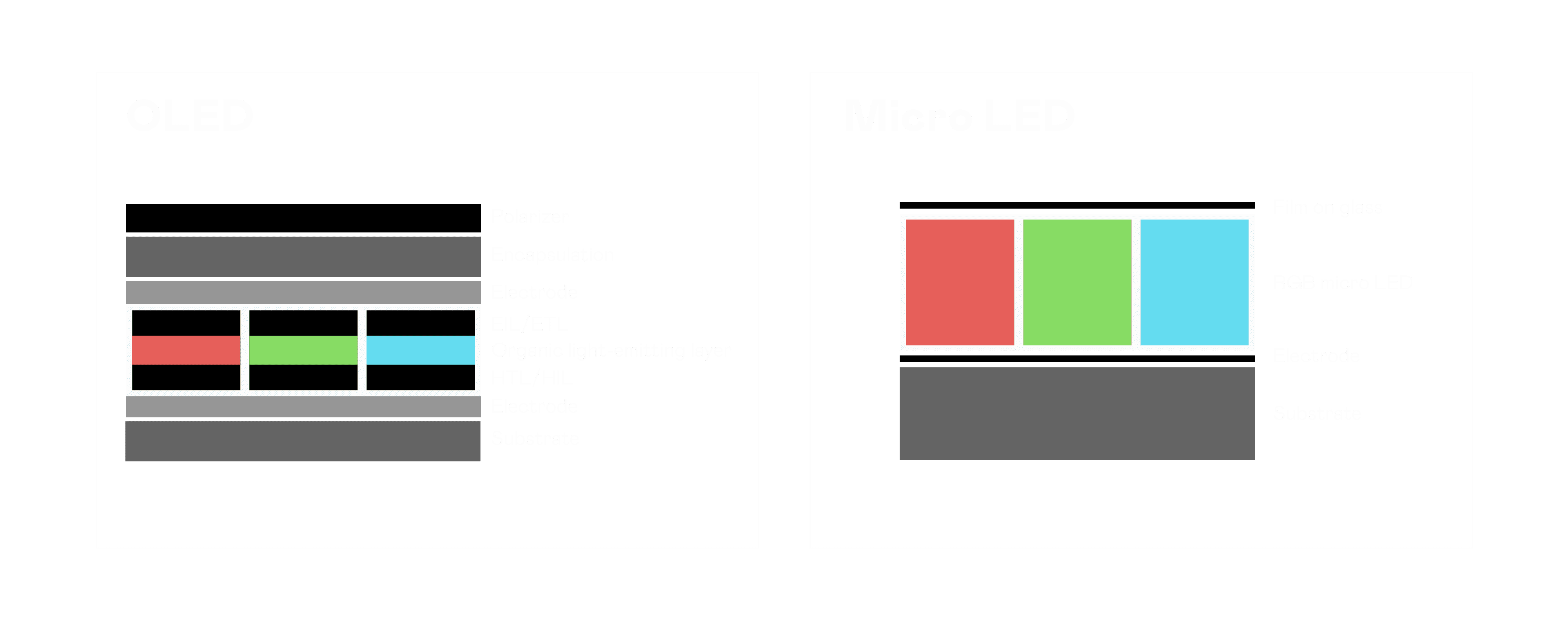 以 LED 做为显示画素,,,,可让 LED 的发光效率发挥到极致,,从而让显示器具备优异的亮度表现,,,不论是在户外或室内,,,,均具备出众的显示效果。。。。同时,,,,与使用有机材料的 OLED 相比,,LED 具备更稳定、、、、寿命更长的特性,,,不仅不会有画面烙印问题,,,,而且更不容易出现故障、、、、坏点。。。